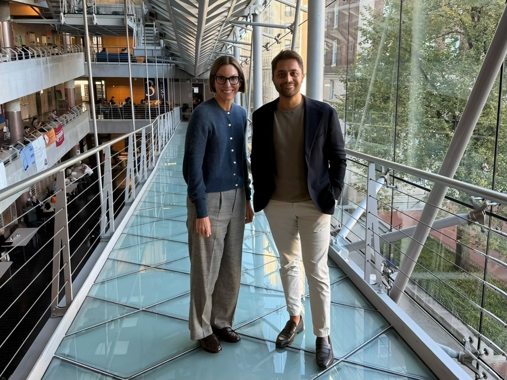 Knack's new CEO Megan Dusenbery, left, with co-founder and former CEO Samyr Qureshi at Columbia University’s 2025 EdTech Week.